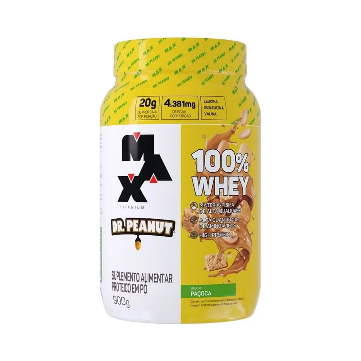 O 100% Whey Dr. Peanut Paçoca Max Titanium 900g é um suplemento proteico que combina a qualidade do whey protein concentrado (WPC) com o sabor irresistível do creme de amendoim paçoca da Dr. Peanut. Esta colaboração entre a Max Titanium e a Dr. Peanut oferece um produto saboroso que auxilia na recuperação muscular e no ganho de massa magra, com o autêntico sabor de paçoca.