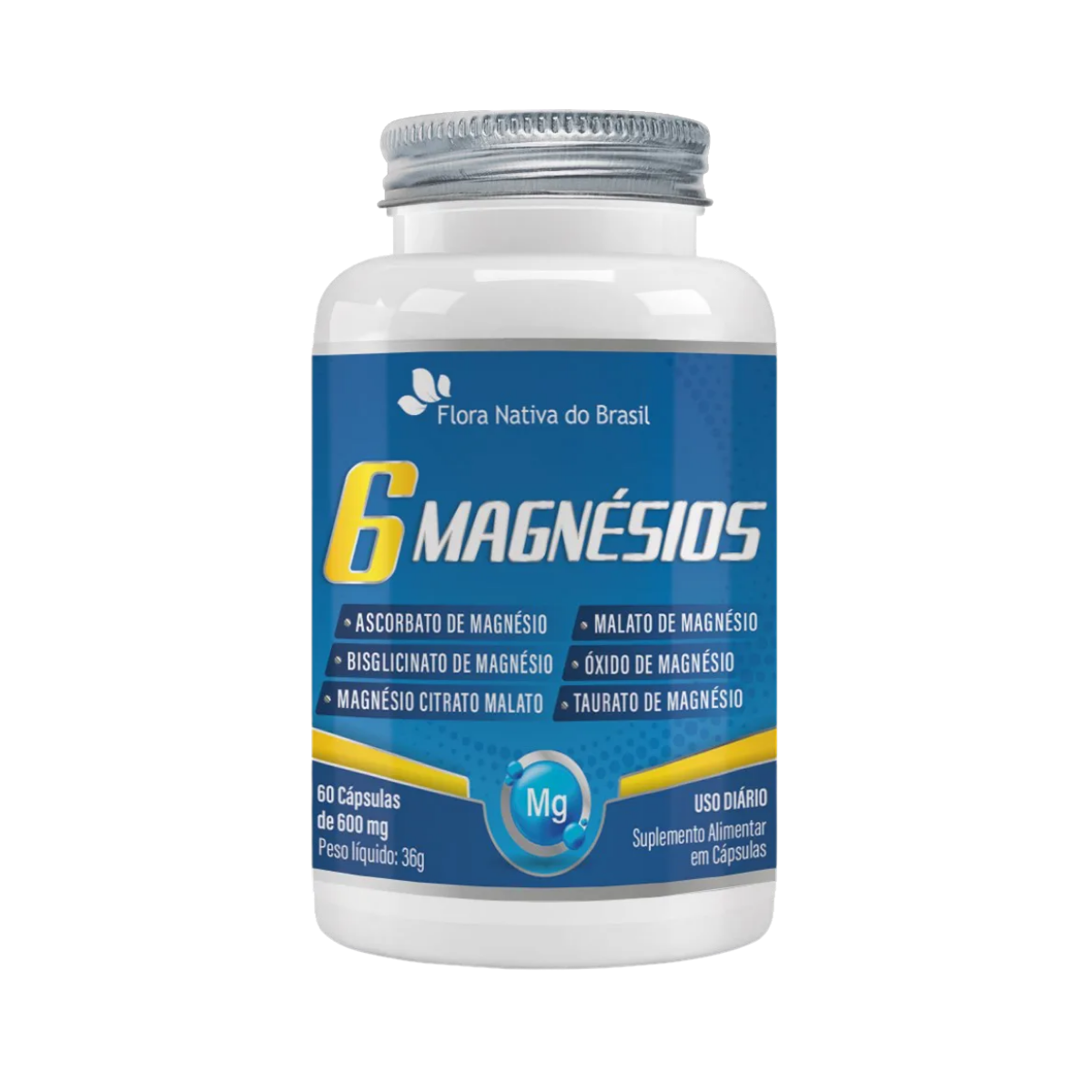 O 6 Magnésios Flora Nativa é um suplemento alimentar em cápsulas que combina seis diferentes formas de magnésio para otimizar a absorção e os benefícios para a saúde. Cada embalagem contém 60 cápsulas.