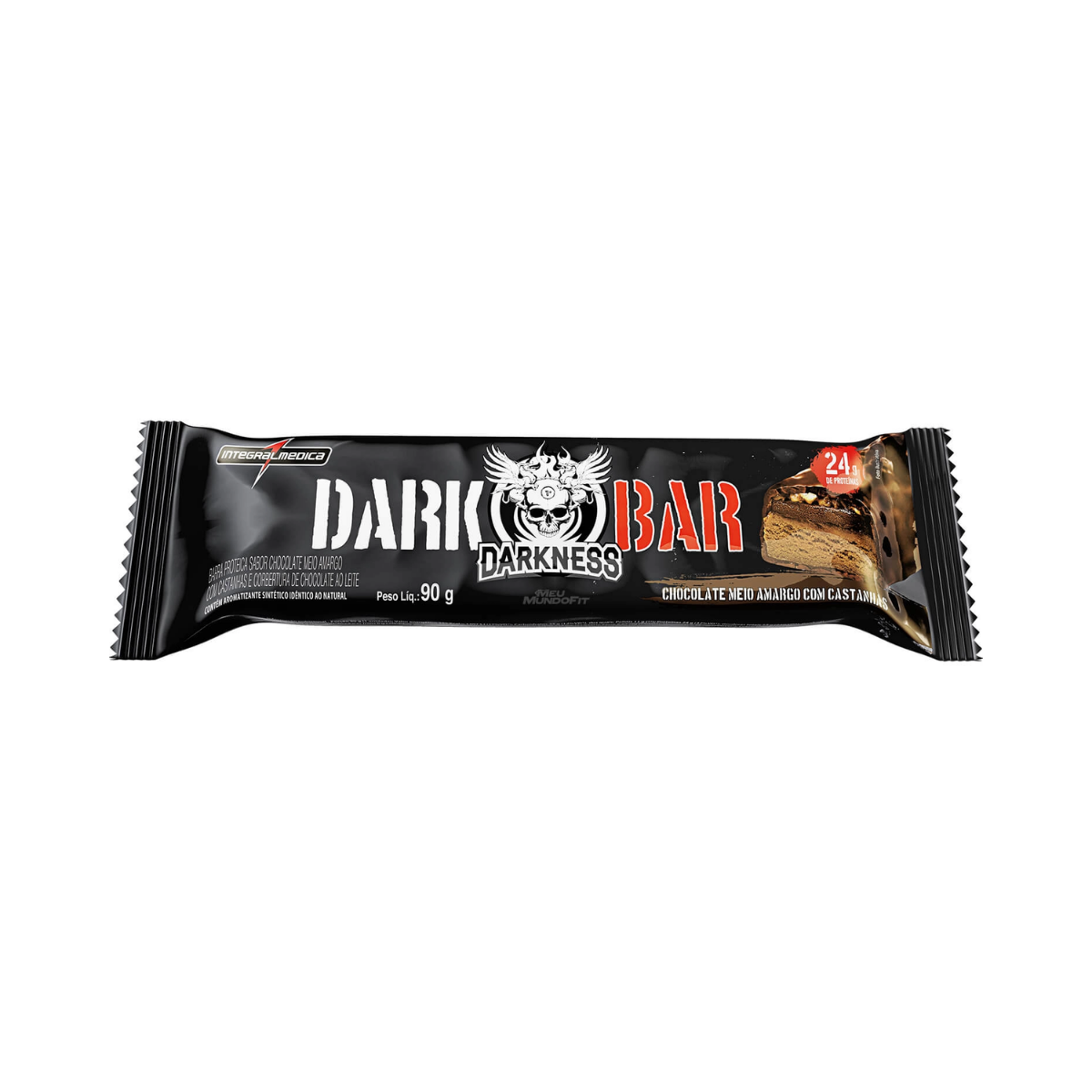 A Dark Bar Creme De Avelã Com Chocolate Darkness 90g é uma barra de proteína formulada com um blend de proteínas lácteas de alto valor biológico, carboidratos de baixo índice glicêmico, triglicerídeos de cadeia média (TCM), vitaminas e minerais, oferecendo um sabor delicioso de creme de avelã com cobertura de chocolate.