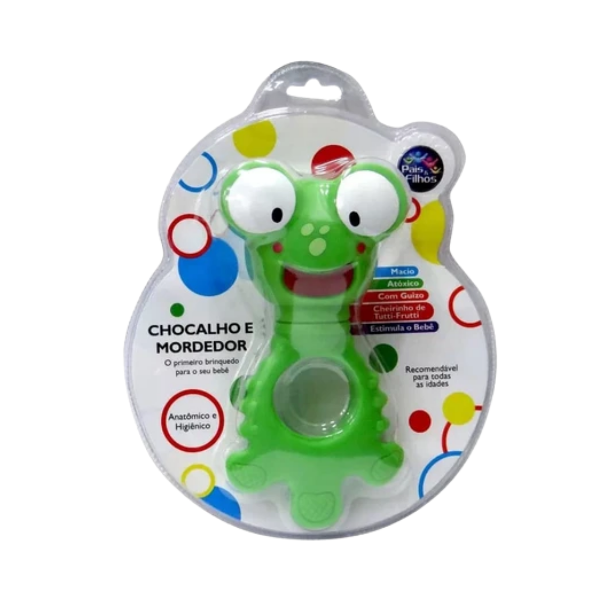 Estímulo Sensorial Completo: As cores vivas e o design de sapinho cativam a visão do bebê. O som suave do chocalho estimula a audição, enquanto as diferentes texturas do mordedor desenvolvem o tato e a percepção oral.