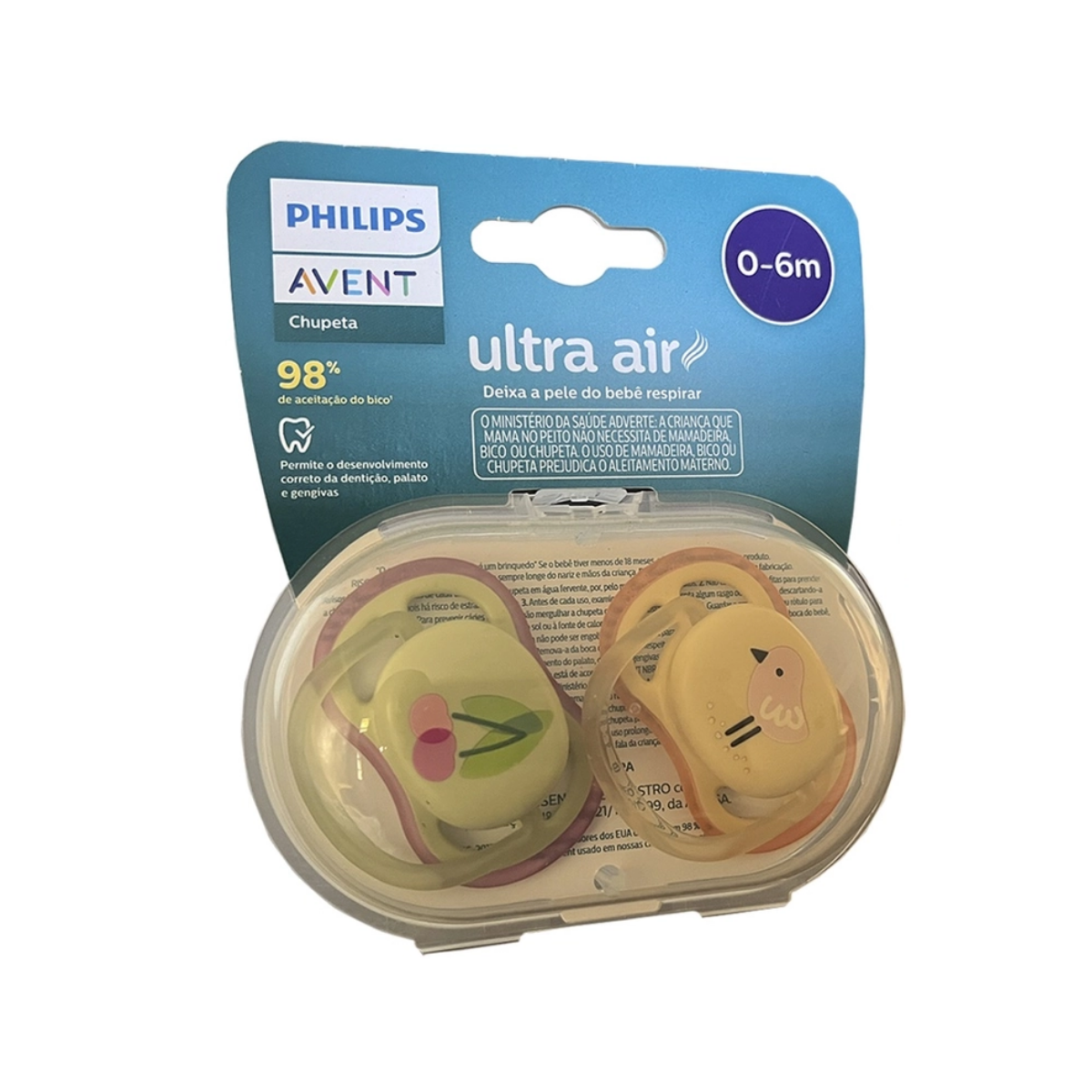 Desenvolvida pela Philips Avent, uma marca de confiança em cuidados infantis, a Chupeta Ultra Air Frutinha/Passarinho oferece uma combinação de inovação e segurança. Cada detalhe foi pensado para proporcionar uma experiência confortável e saudável para seu bebê, garantindo que a chupeta se adapte perfeitamente às necessidades dos pequenos.