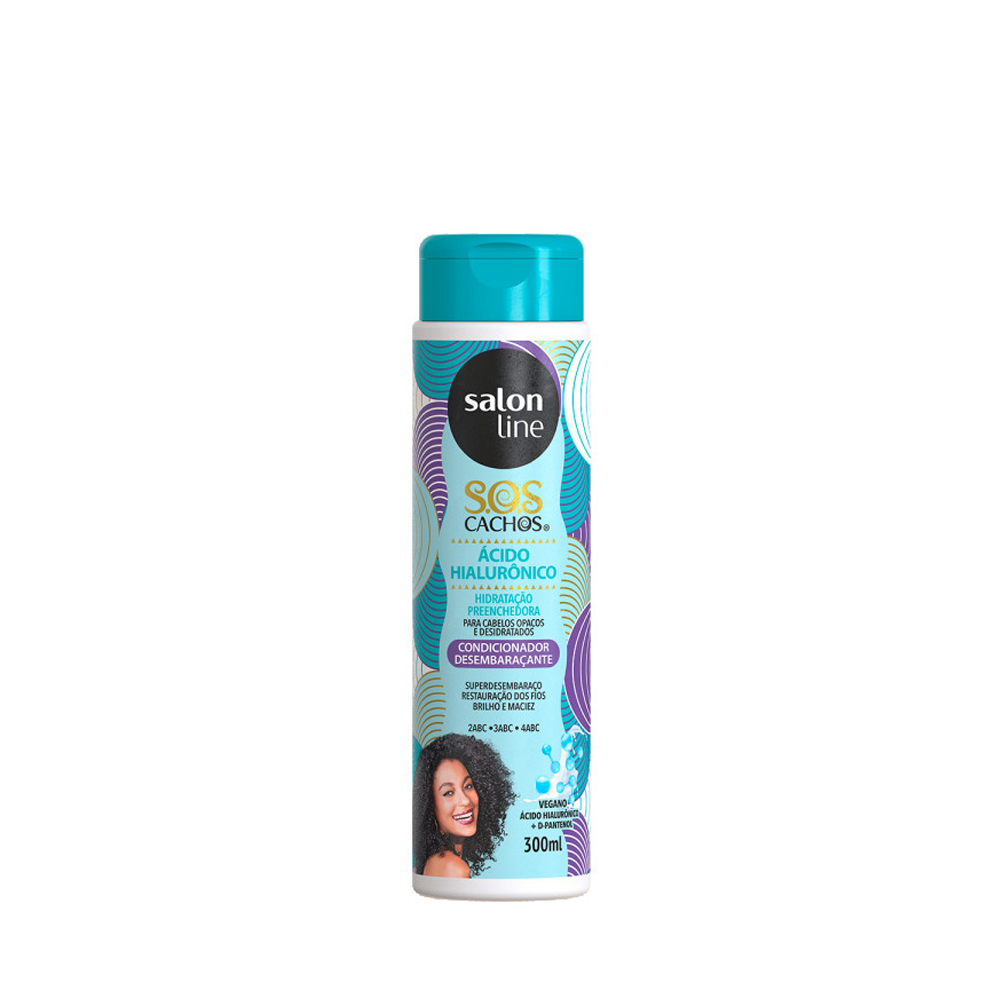 O condicionador Salon Line S.O.S Cachos Ácido Hialurônico é um grande aliado nos cuidados com a restauração dos cabelos. Ideal para cabelos cacheados, crespos e ondulados, ele garante hidratação preenchedora, superdesembaraço, brilho e maciez. Sua fórmula com Ácido Hialurônico e D-Pantenol é indicada para cabelos desidratados e opacos. Este condicionador Salon Line S.O.S Cachos é um produto vegano e pode ser usado a partir dos 12 anos de idade.