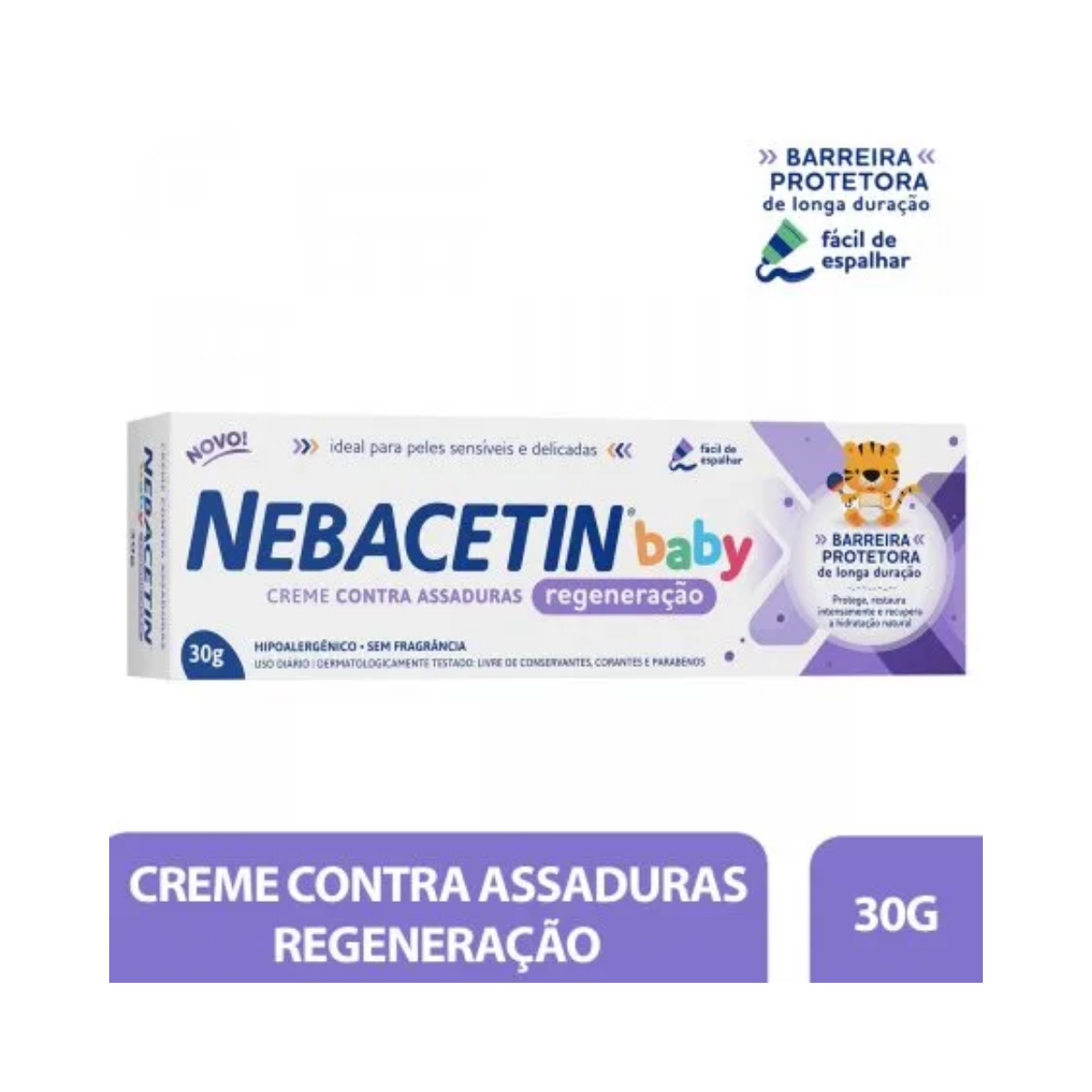 Nebacetin Baby Regeneração é um creme contra assaduras que forma uma barreira protetora ideal para o cuidado e reparação da pele já sensibilizada.