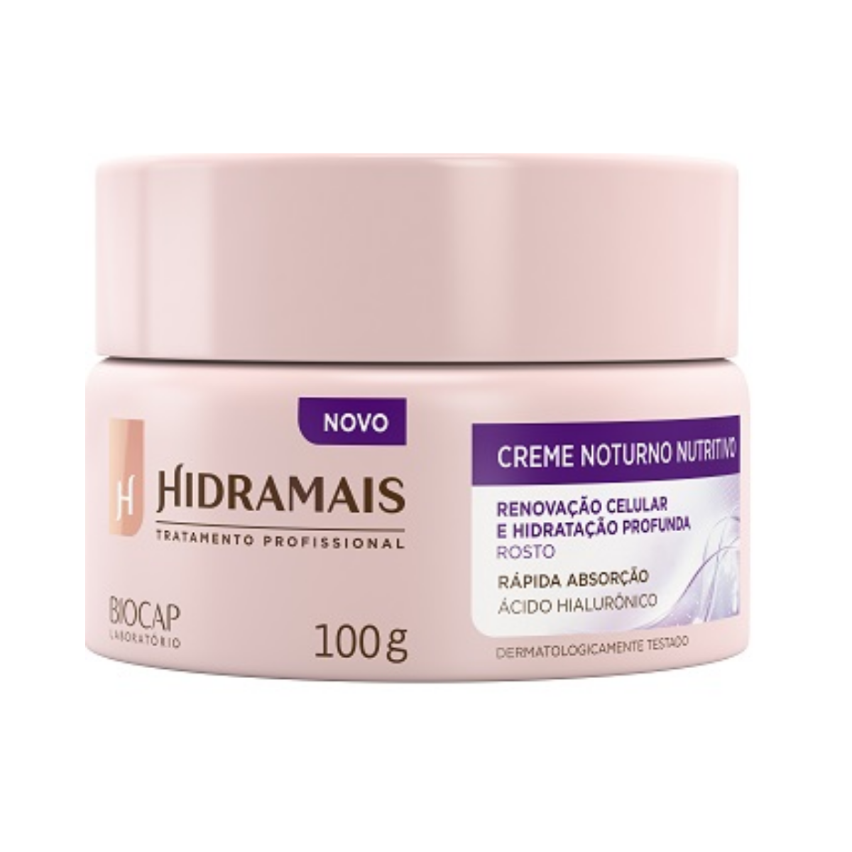 O Creme Facial Noturno Nutritivo Hidramais 100g é um produto de cuidado com a pele formulado especificamente para ser aplicado antes de dormir. Durante o sono, a pele entra em um processo de reparação e regeneração, e este creme visa otimizar esses processos, fornecendo hidratação intensa e nutrientes essenciais para uma pele mais saudável e revitalizada ao acordar.