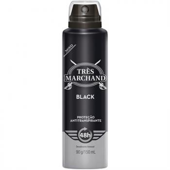 O Desodorante Aerossol Antitranspirante Très Marchand Masculino Black oferece uma proteção eficaz contra o mau odor e o suor excessivo por até 48 horas. Com uma fragrância sensual inspirada na perfumaria fina, proporciona uma sensação de bem-estar que perdura ao longo do dia. Ideal para homens que buscam confiança e conforto durante suas atividades diárias.