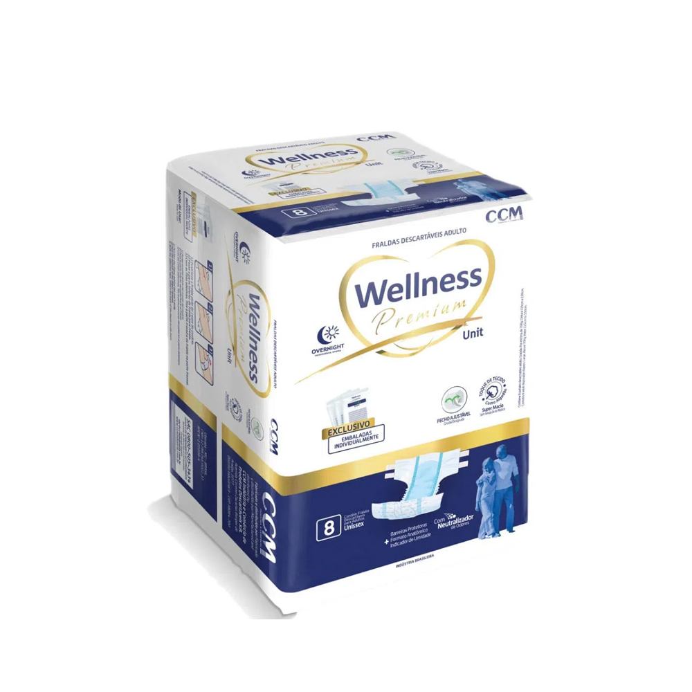 As fraldas descartáveis para adultos Wellness Permium Unit, com tecnologia toque de tecido e formato anatômico, proporcionam maior conforto para o adulto.