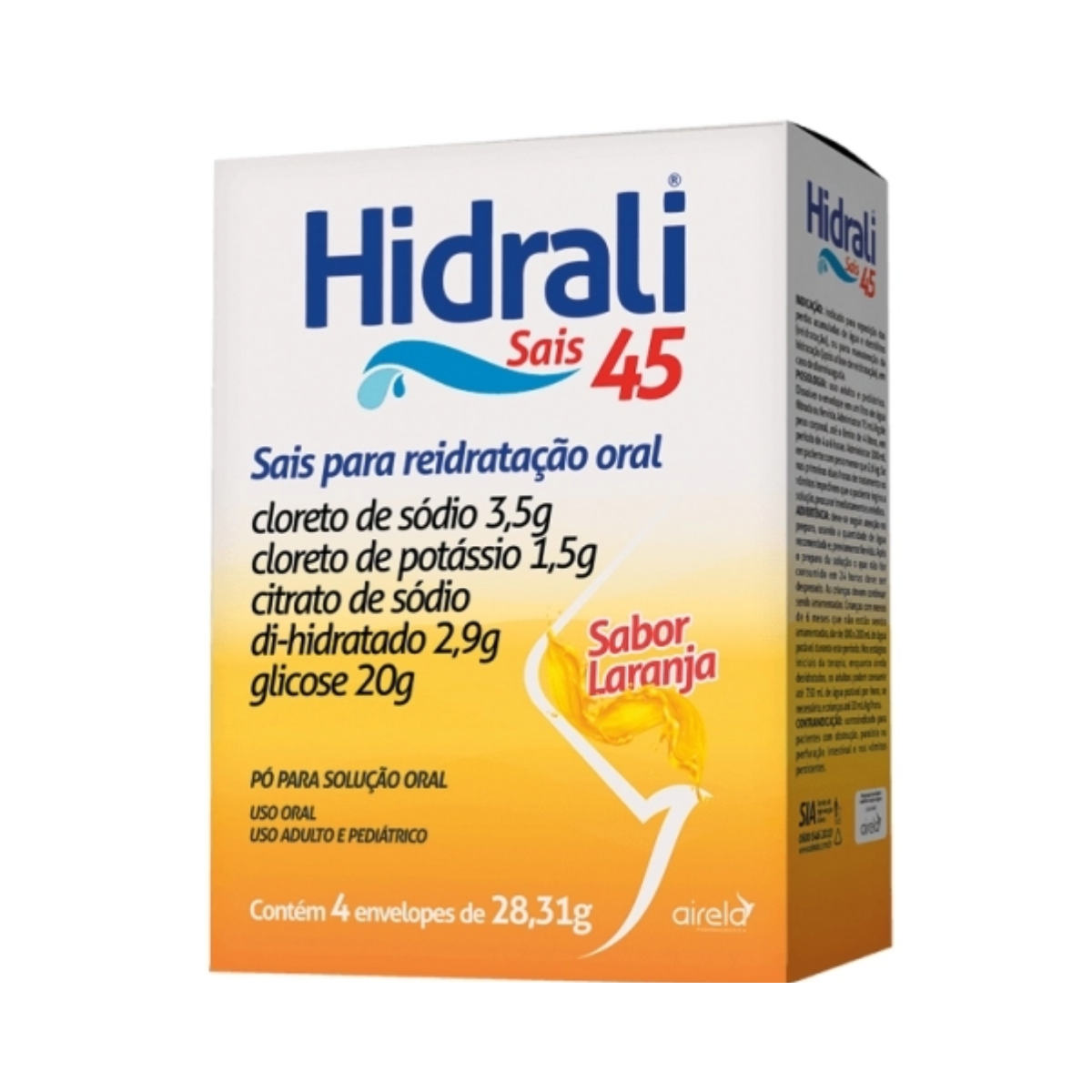 O Hidrali Sais Sabor Laranja Airela 4 Envelopes é uma solução de reidratação oral (SRO) formulada para repor rapidamente líquidos e eletrólitos perdidos pelo organismo. Com um agradável sabor de laranja, é uma opção prática e eficaz para auxiliar na recuperação da hidratação, especialmente em casos de desidratação leve a moderada causada por diarreia, vômitos, ou em situações de grande perda de líquidos, como exercícios intensos ou calor excessivo.