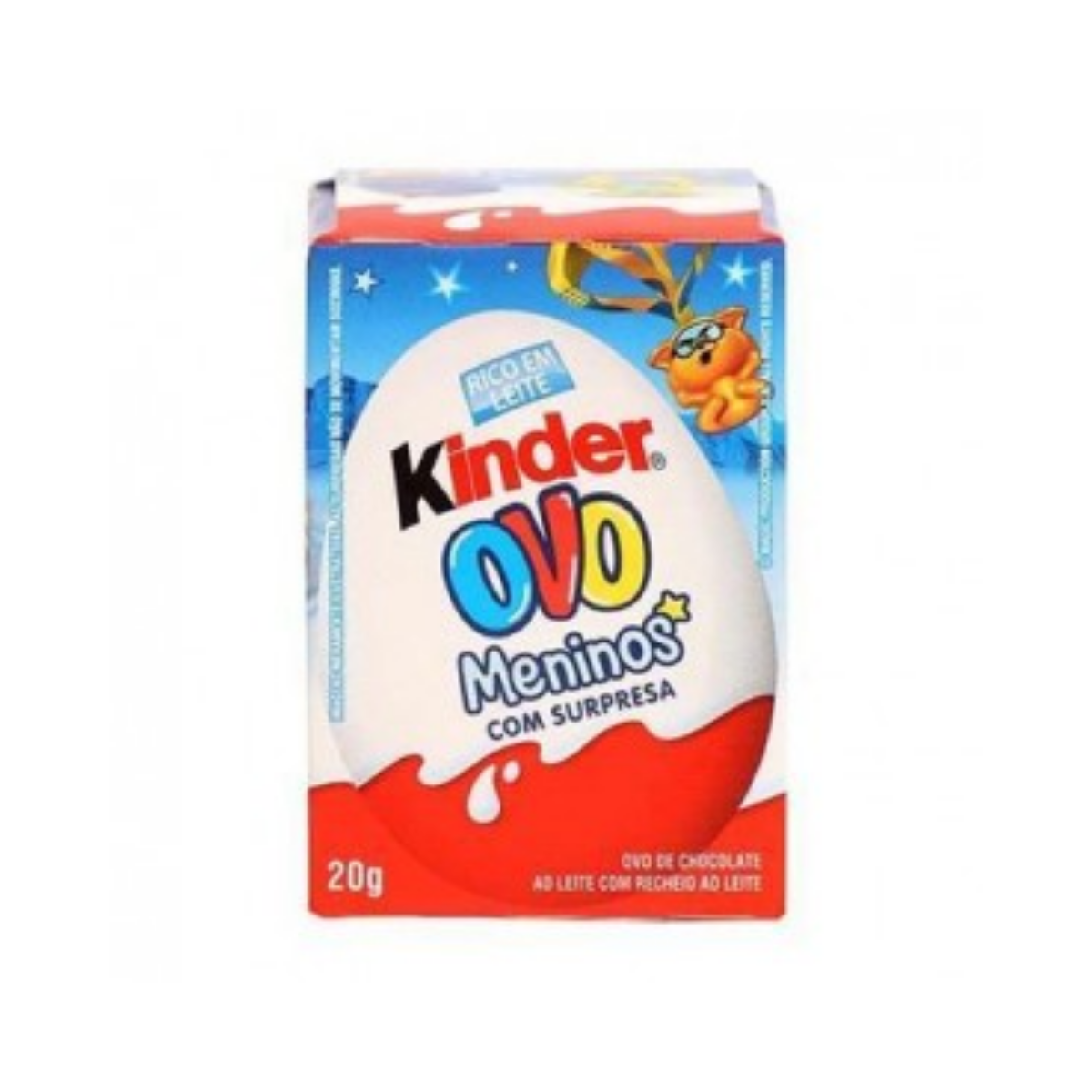 Kinder Ovo Ao Leite Meninos 20gTão gostoso quanto ser surpreendido é surpreender quem amamos, especialmente as crianças. Kinder Ovo é a deliciosa surpresa que combina o chocolate Kinder que as crianças adoram e um brinquedo sempre diferente em um único ovinho. I