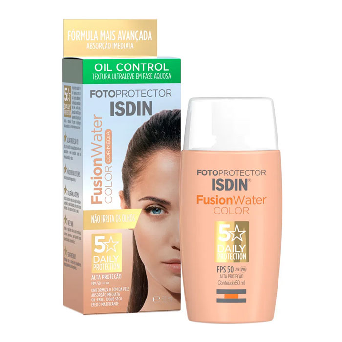 Fusion Water Color é um protetor solar facial com cor, toque seco e alta proteção UVA/UVB (FPS 50). Além de proteger, sua fórmula proporciona um acabamento natural na pele, uniformiza o tom e disfarça imperfeições, sendo uma excelente base de maquiagem.
