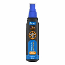 Repelente de Insetos em Spray Baruel possui alta eficácia, contém icaridina e oferece até 6 horas de proteção para a pele contra picadas de insetos como o Aedes Aegypti, transmissor de doenças como dengue, zika e chukungunya.AÇÃO/ATIVOS:Sua fórmula exclusiva é hidratante e de fácil espalhabilidade. Não é pegajoso e oferece toque seco. Fórmula livre de corantes e parabenos. Hipoalergênico e dermatologicamente testado. Imagem meramente ilustrativa. O produto pode ter variação de cor ou desenho, porém as características gerais são as mesmas especificadas na descrição do produto.MODO DE USAR:Agite bem a embalagem antes de usar e aplique o repelente nas regiões expostas da pele, massageando suavemente até completa absorção. Reaplique a cada 6 horas ou após o contato com a água e transpiração excessiva.