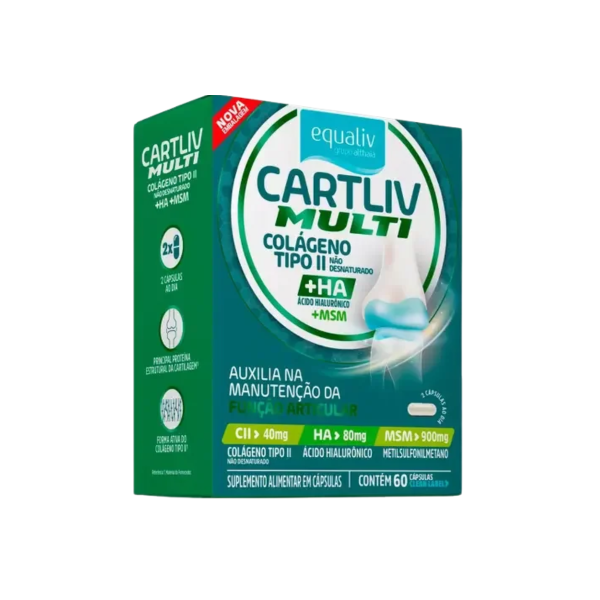 O Suplemento Alimentar Equaliv Cartliv Multi Althaia 60 Cápsulas representa uma solução completa para o suporte da saúde articular. Sua fórmula "Multi" combina ingredientes de alta qualidade, como colágeno tipo II, ácido hialurônico, cúrcuma e MSM, que atuam em conjunto para proteger a cartilagem, reduzir a inflamação e o desconforto, e melhorar a mobilidade e flexibilidade das articulações.