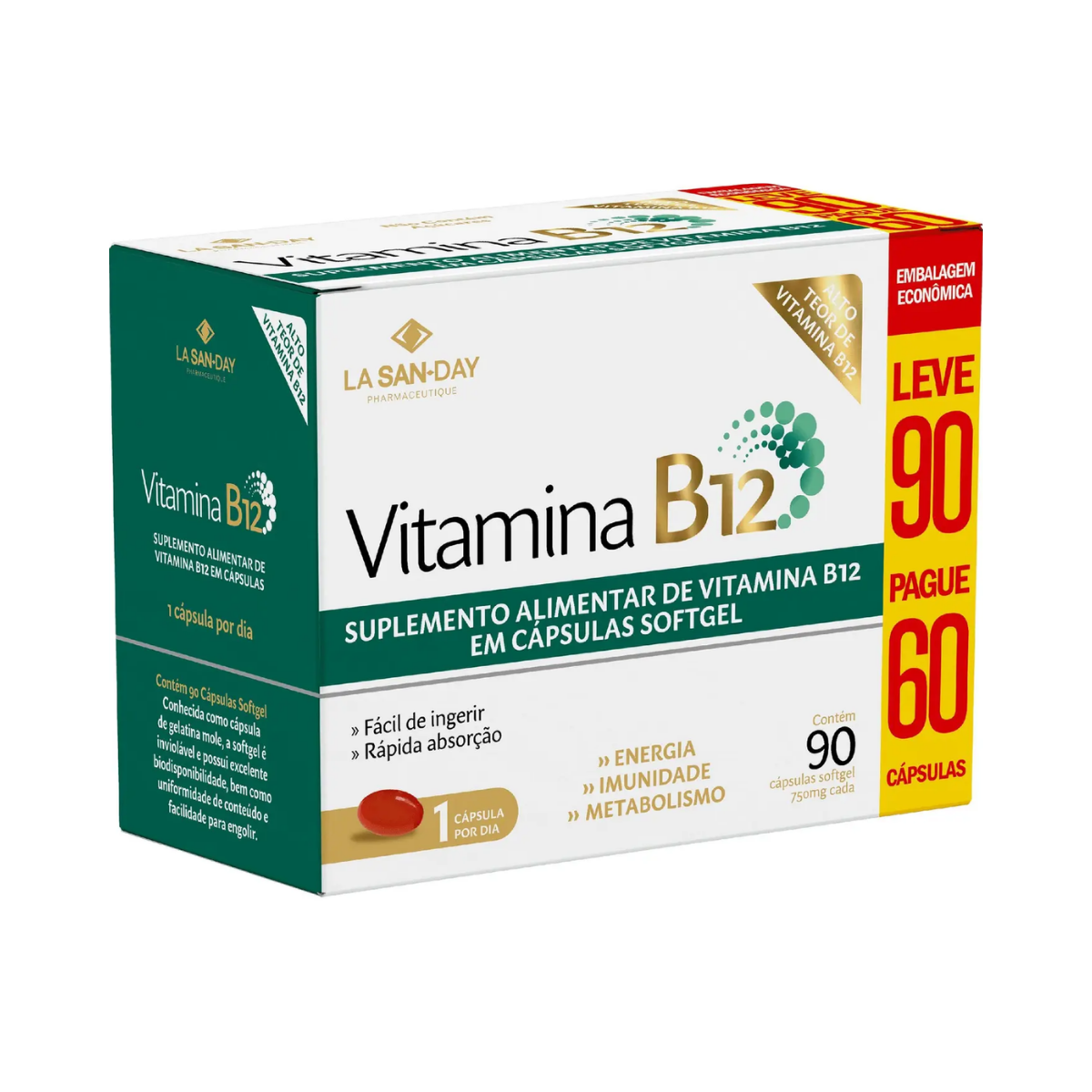 A Vitamina B12 La San Day 90 Cápsulas é uma forma prática de suplementar essa vitamina essencial, importante para diversas funções do organismo, incluindo o sistema nervoso, a formação de células sanguíneas e o metabolismo energético.